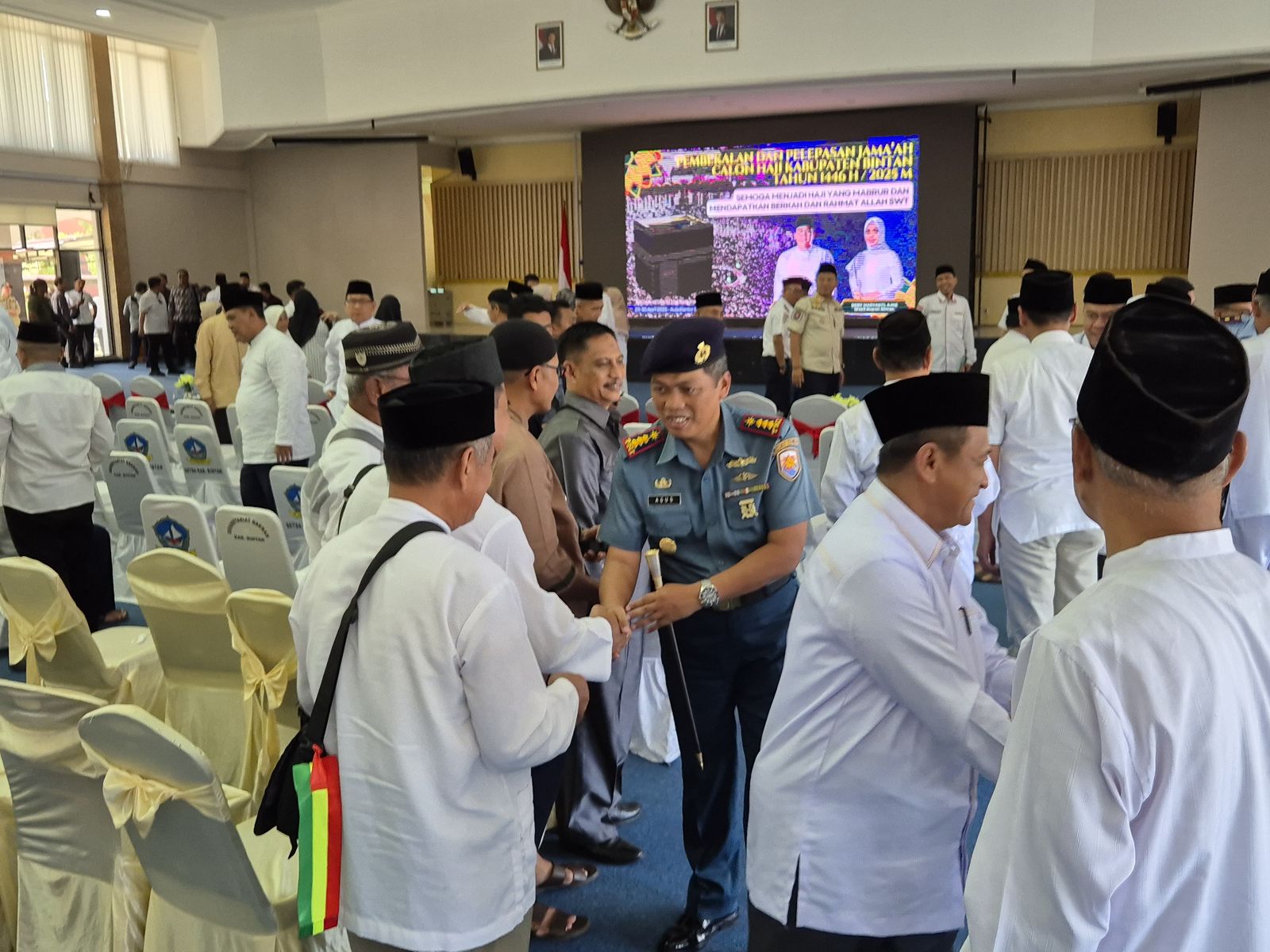 Kompassidik.Online Bintan — Komandan Lanal Bintan Kolonel Laut (P) Dr. Eko Agus Susanto, S.E., M.M., bersama Forkopimda Bintan dampingi Bupati Bintan dalam rangka acara Pembukaan Pembekalan dan Pelepasan Jama’ah Calon Haji Kabupaten Bintan 1446 / 2025, bertempat di Aula Kantor Bupati Bintan, Rabu (30/04/2025).
